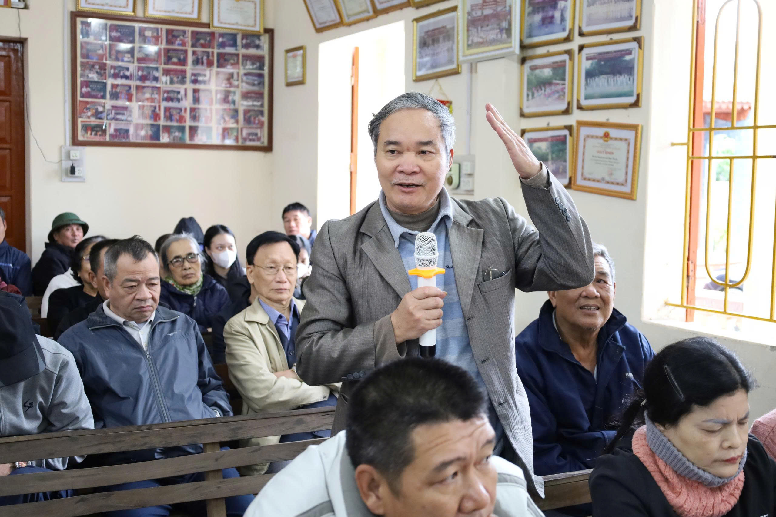 Đại diện người dân phát biểu ý kiến về mức giá bồi thường, hỗ trợ khi Nhà nước thu hồi đất