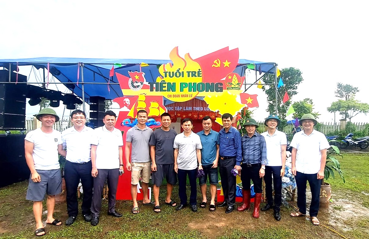 Các đồng chí lãnh đạo địa phương thăm quan, chụp ảnh lưu niệm tại trại hè thôn Nhân Lư