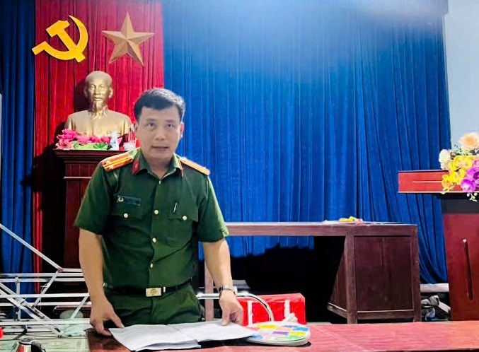 Trung tá Vương Tuấn Anh – Phó trưởng Công an xã Hà Bắc phát biểu