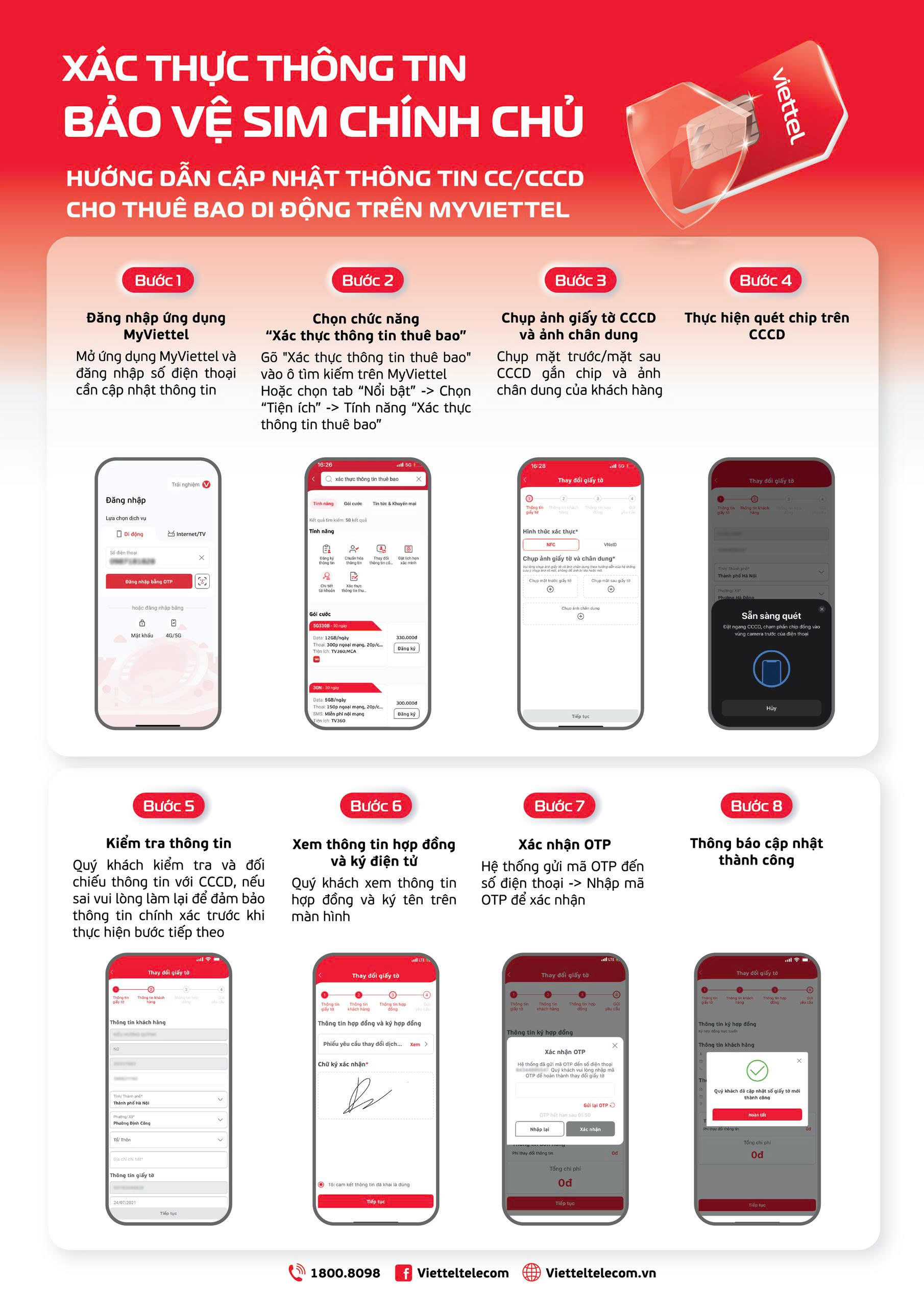 Khách hàng có thể thực hiện qua ứng dụng MyViettel nếu hệ thống hỗ trợ, hoặc đến cửa hàng Viettel trong trường hợp cần đối chiếu trực tiếp giấy tờ.