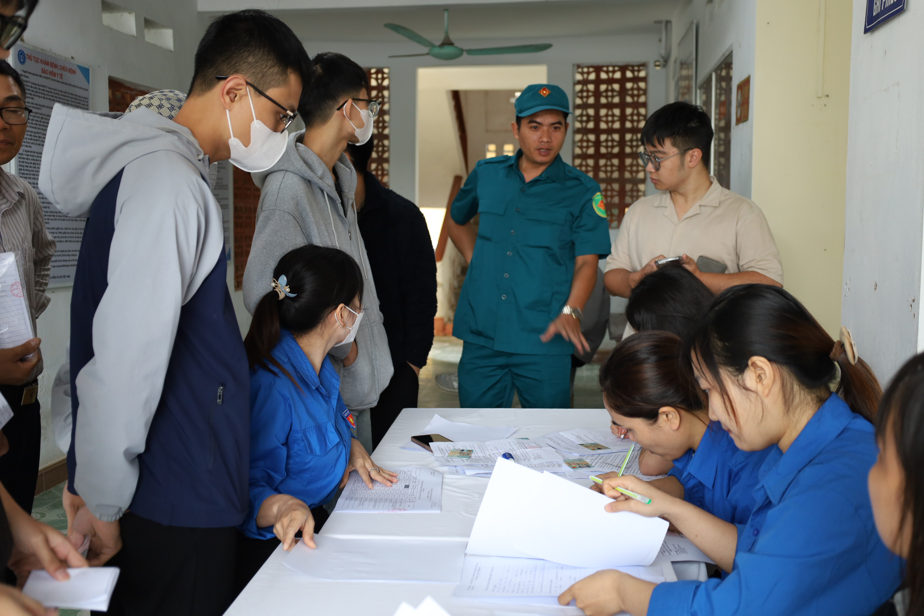 Tại buổi sơ tuyển, các nam thanh niên đã được khám theo các quy trình 5 phòng gồm ghi điền phiếu sơ tuyển đo mạch, huyết áp, chiều cao, cân nặng, thị lực, thể lực.