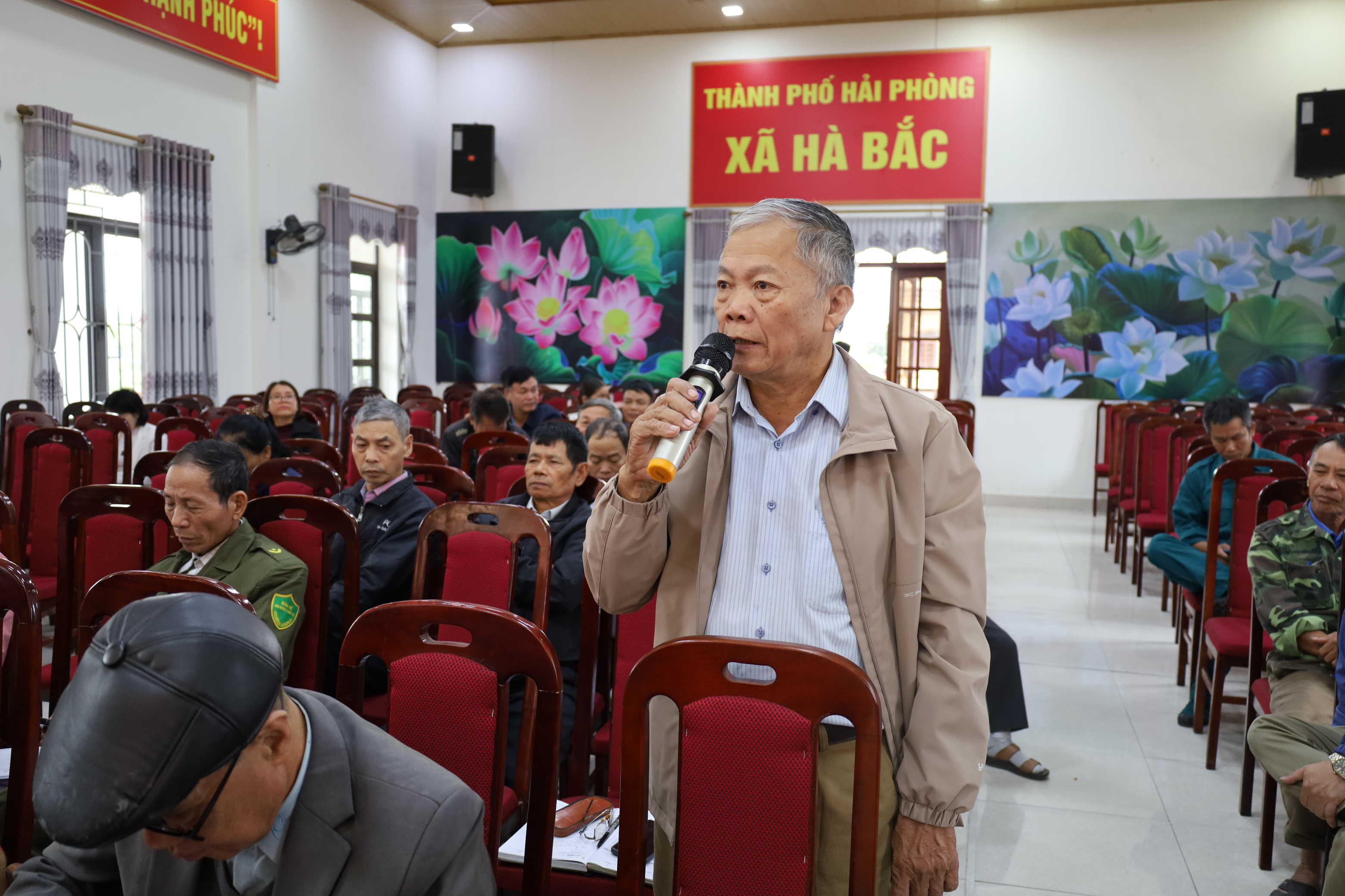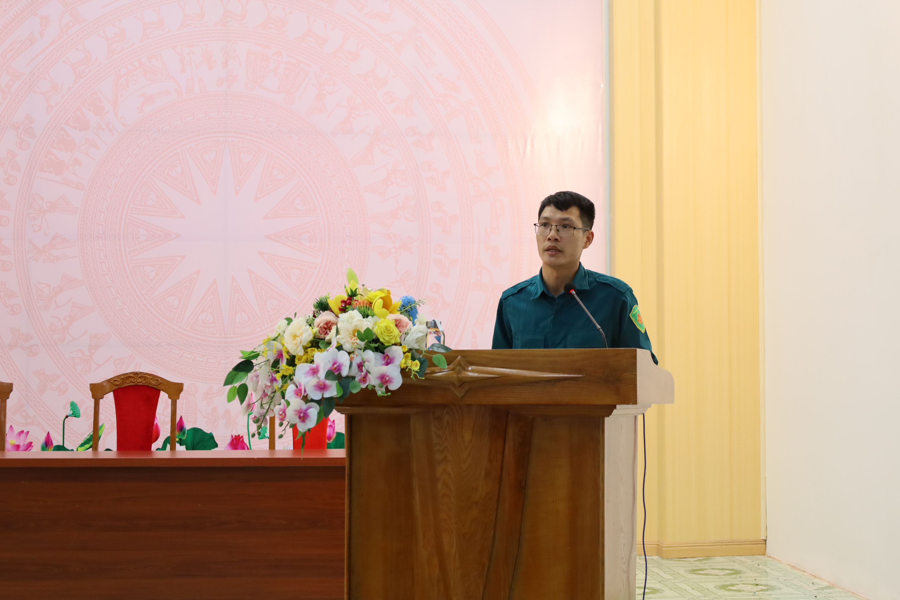 Trưởng công an xã Hà Bắc phát biểu ý kiến về công tác phối hợp giữa công an và quân sự trong công tác khám sơ tuyển NVQS