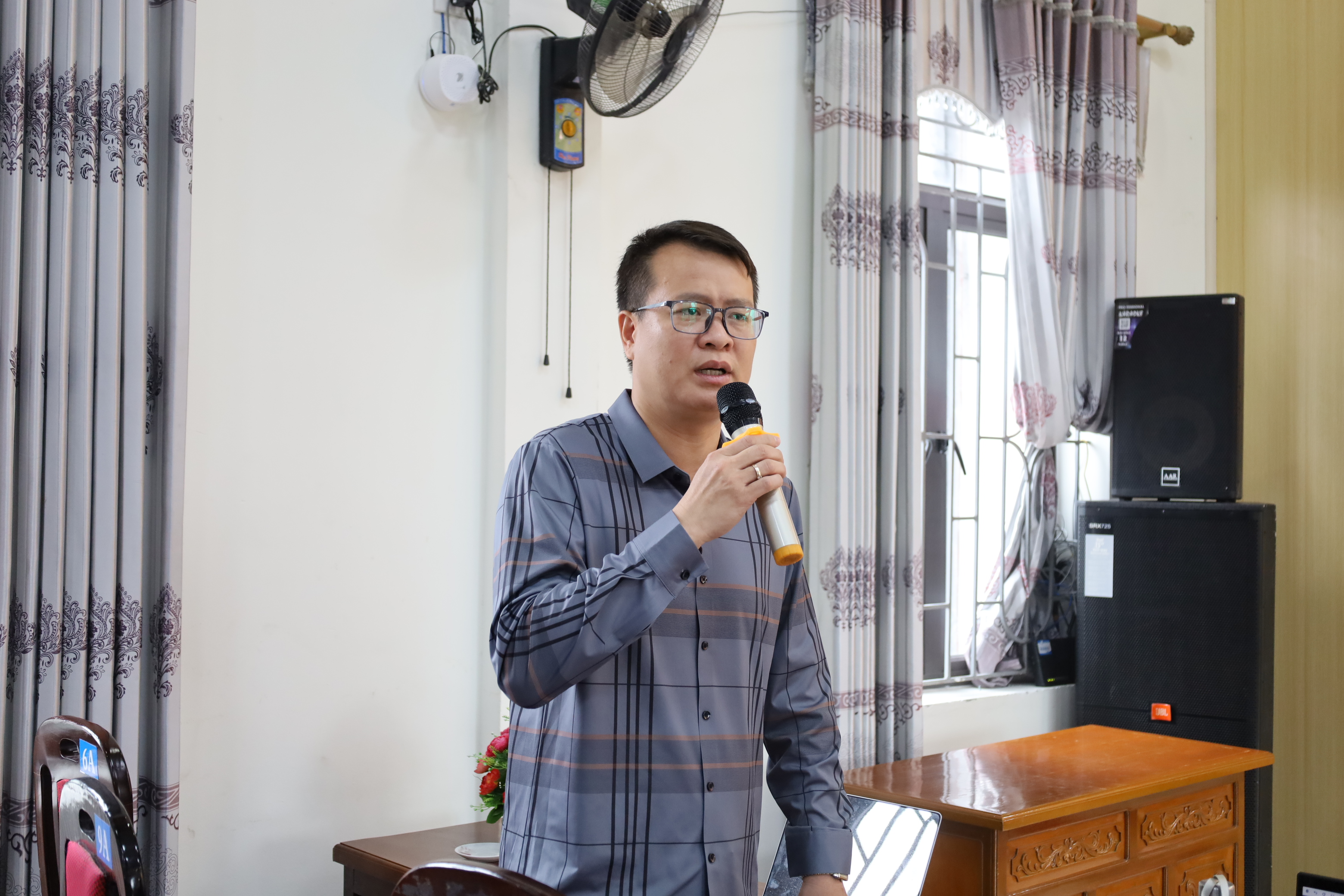 Bí thư chi bộ thôn Quan Khê phát biểu ý kiến về công tác vệ sinh môi trường chuẩn bị cho ngày Đại đoàn kết ở thôn, khu dân cư