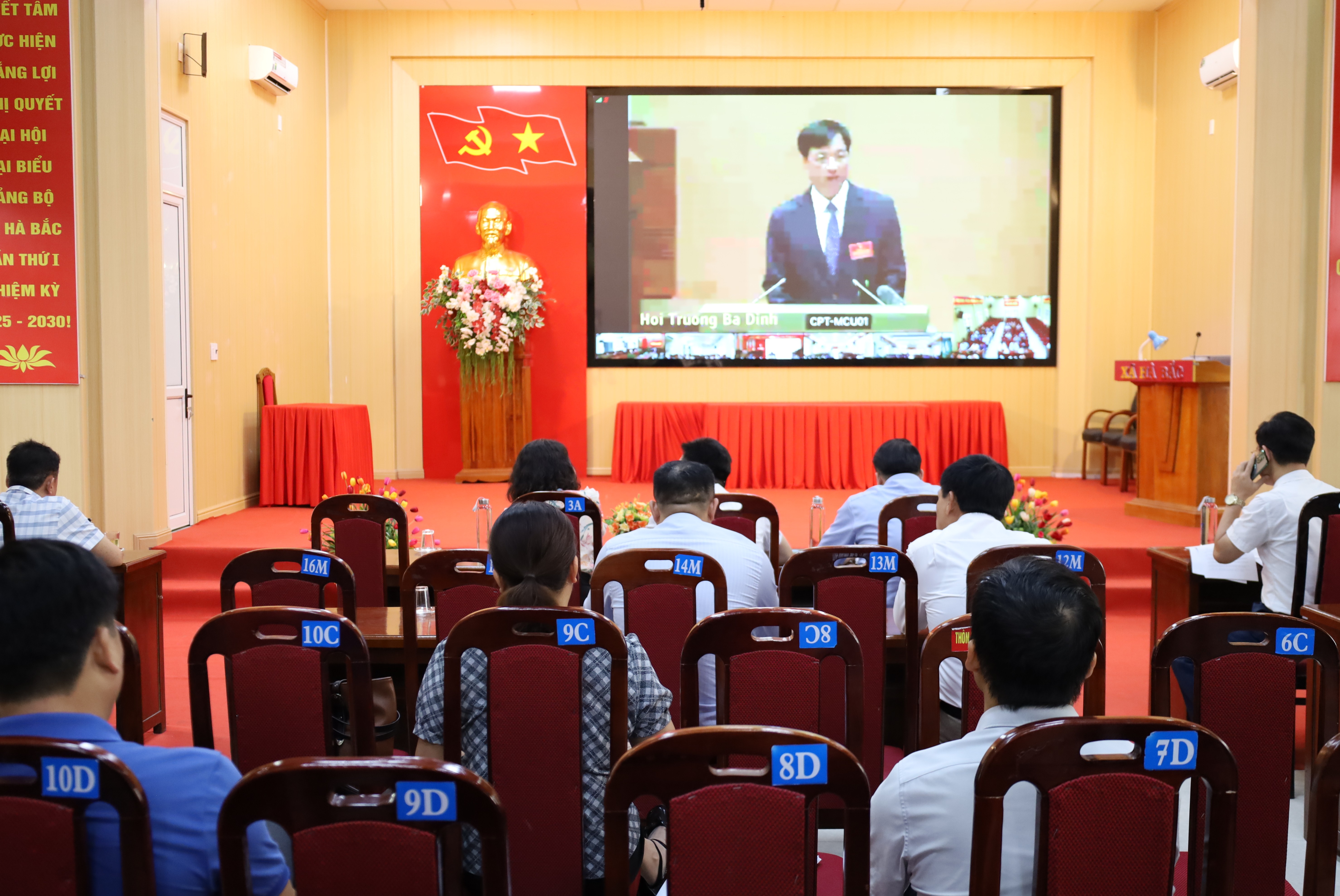 Dự tại điểm cầu xã Hà Bắc có các đồng chí Phạm Văn Hùng- Bí thư Đảng ủy, Chủ tịch UBND xã, đồng chí Phạm Văn Chung- Phó Bí thư Thường trực Đảng ủy xã, đồng chí Nguyễn Anh Tuấn- Phó Bí thư Đảng ủy, Chủ tịch UBND xã.Cùng tham dự có các đồng chí trong Ban Thường vụ, Ban Chấp hành Đảng bộ xã, lãnh đạo HĐND, UBND, các ban, ngành, đoàn thể và đông đảo cán bộ, đảng viên.