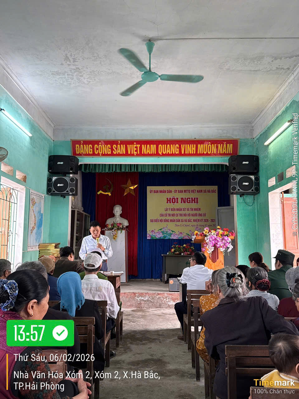 Trong các ngày 5-6/2/2026, Ủy ban MTTQ Việt Nam xã Hà Bắc phối hợp với UBND xã và các thôn tổ chức hội nghị lấy ý kiến nhận xét và tín nhiệm của cử tri nơi cư trú đối với người ứng cử đại biểu HĐND xã nhiệm kỳ 2026-2031.