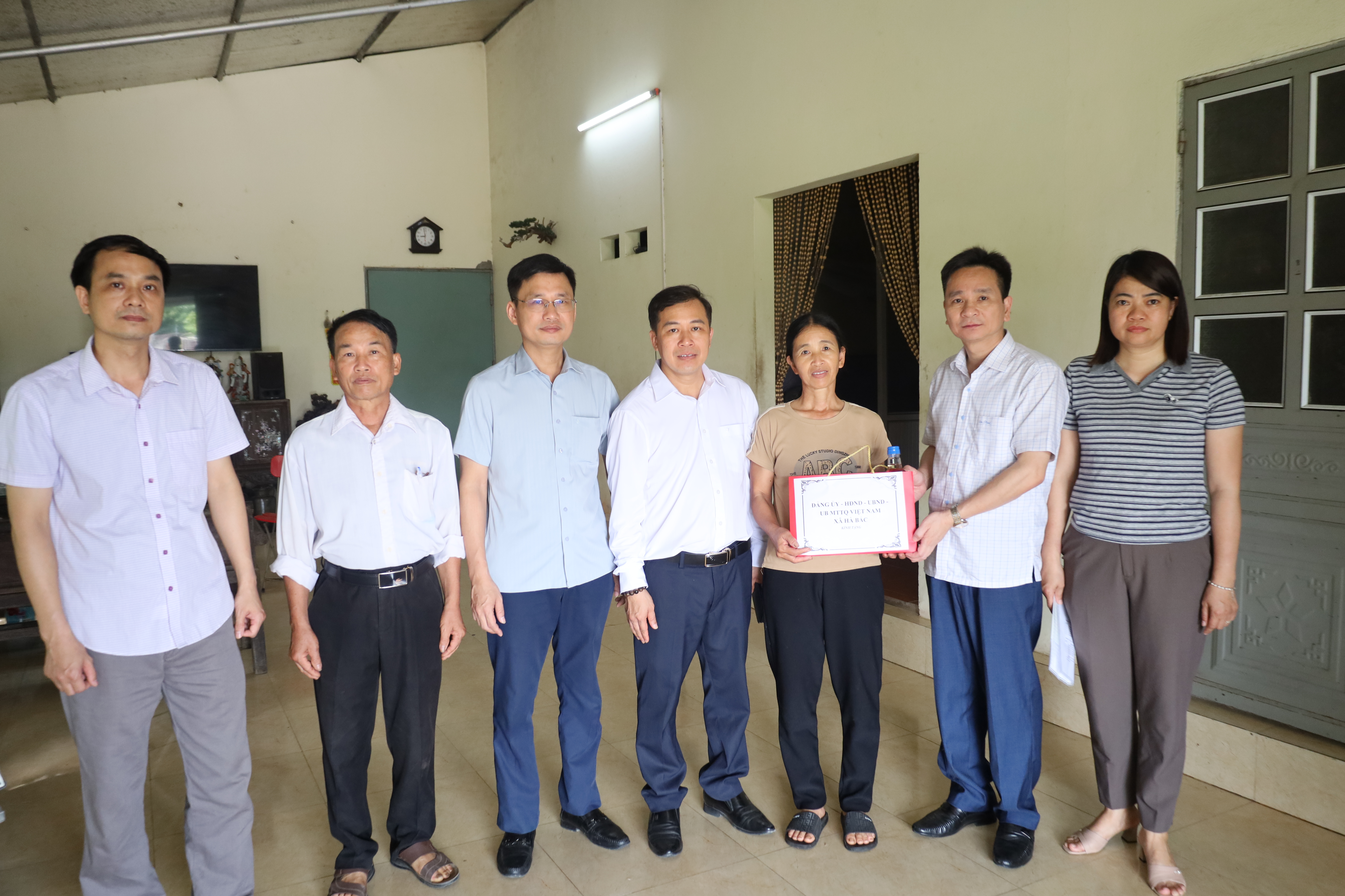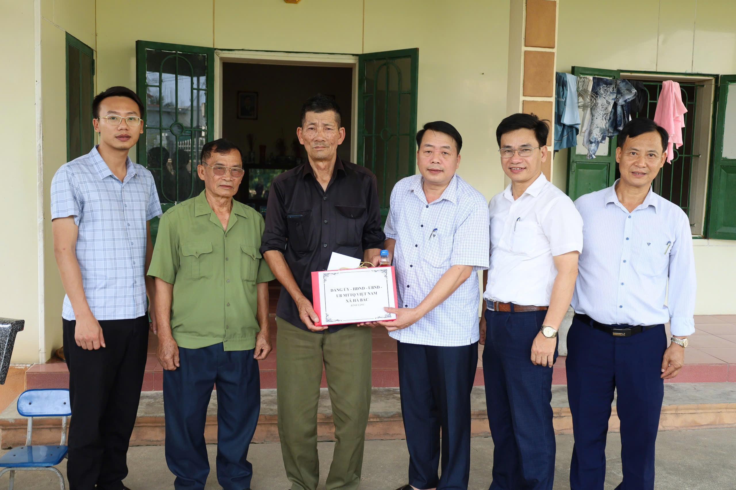 Các đồng chí lãnh đạo xã Hà Bắc thăm, tặng quà các gia đình người có công, thân nhân gia đình liệt sĩ và công nhân có hoàn cảnh khó khăn trên địa bàn