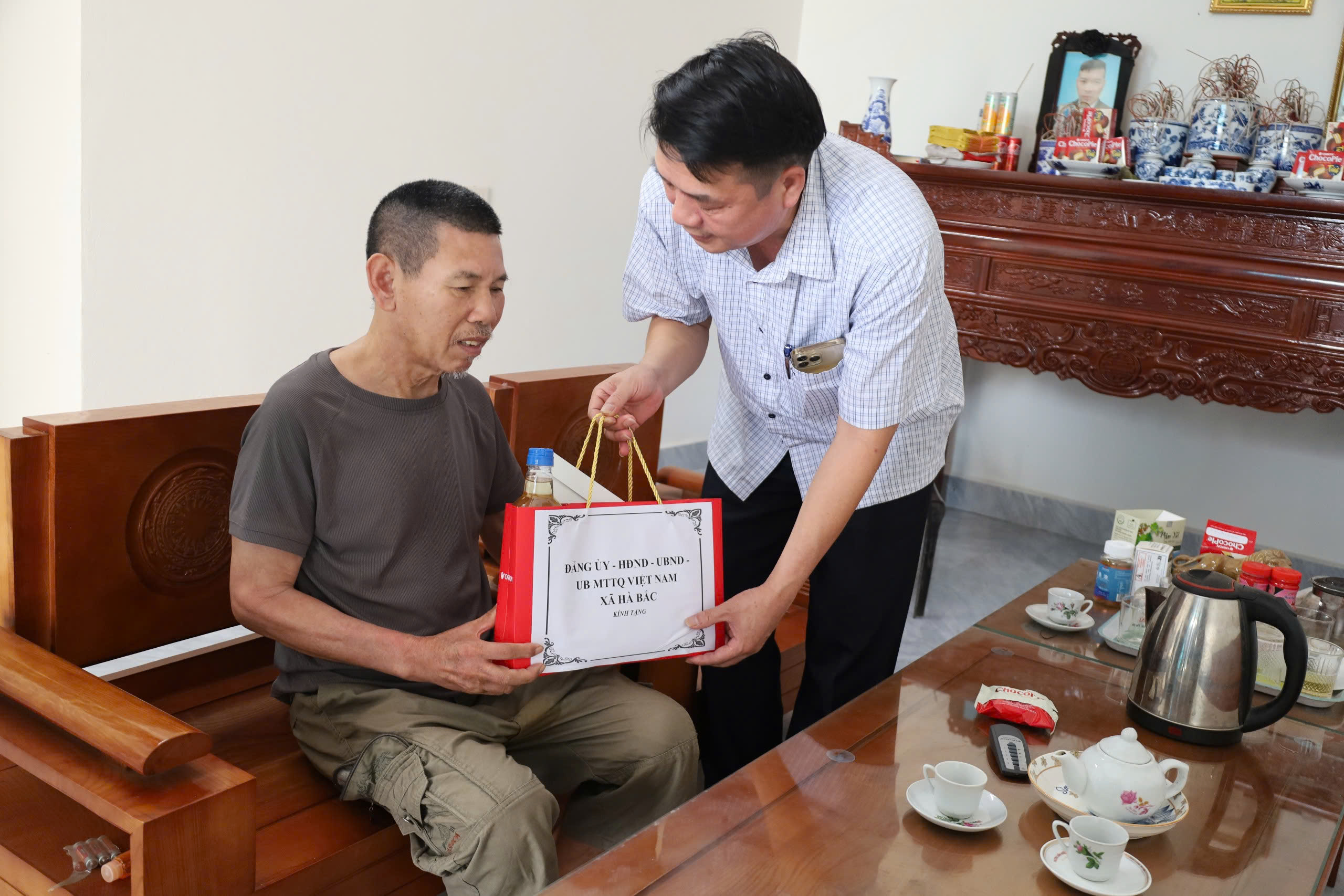 Trong đó đoàn công tác số 1 do đồng chí Phạm Văn Hùng- Bí thư Đảng ủy, Chủ tịch HĐND xã làm trưởng đoàn 1 đến thăm, tặng quà gia đình thân nhân liệt sĩ và công nhân có hoàn cảnh khó khăn tại thôn Đông, Thôn Bắc và thôn Đoài.