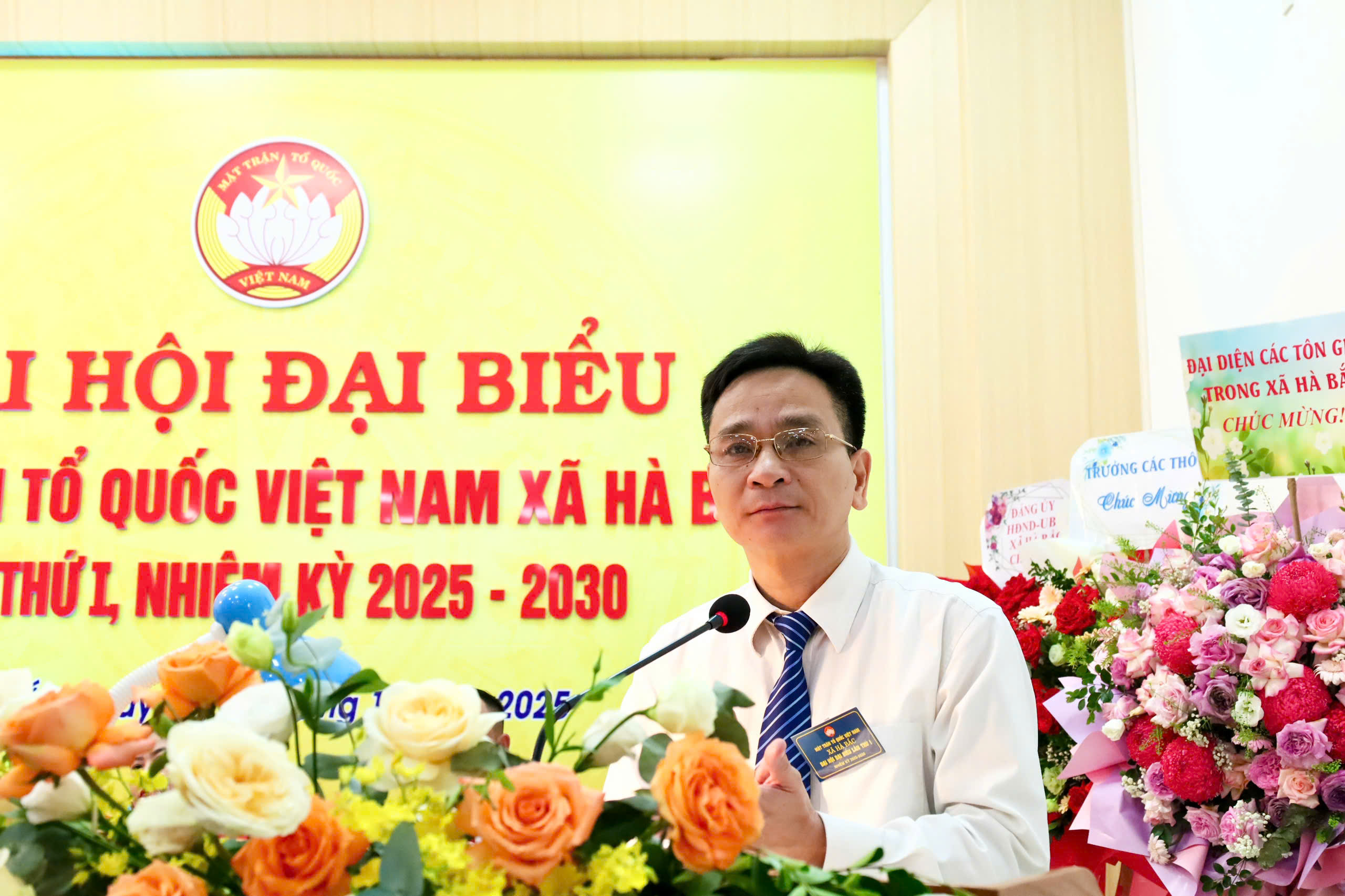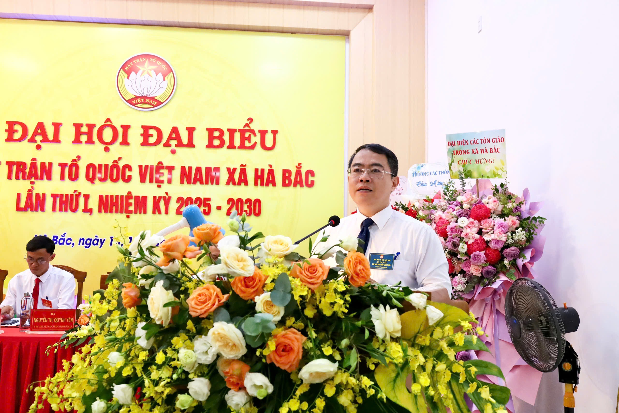Phát biểu chỉ đạo tại Đại hội, đồng chí Vũ Việt Anh, Phó Chủ tịch Ủy ban MTTQ Việt Nam thành phố và đồng chí Phạm Văn Hùng, Bí thư Đảng ủy, Chủ tịch HDDND xã ghi nhận, biểu dương những kết quả nổi bật mà MTTQ xã Hà Bắc đạt được trong nhiệm kỳ qua và khẳng định: Trong bối cảnh xã Hà Bắc vừa được sáp nhập, quy mô lớn, dân số đông, địa bàn rộng, MTTQ cần tiếp tục phát huy vai trò trung tâm trong khối Đại đoàn kết toàn dân; chủ động nắm bắt tâm tư, nguyện vọng của nhân dân, làm tốt công tác tham mưu với cấp ủy, phối hợp với chính quyền trong việc triển khai các nhiệm vụ chính trị, phát triển kinh tế xã hội của địa phương.