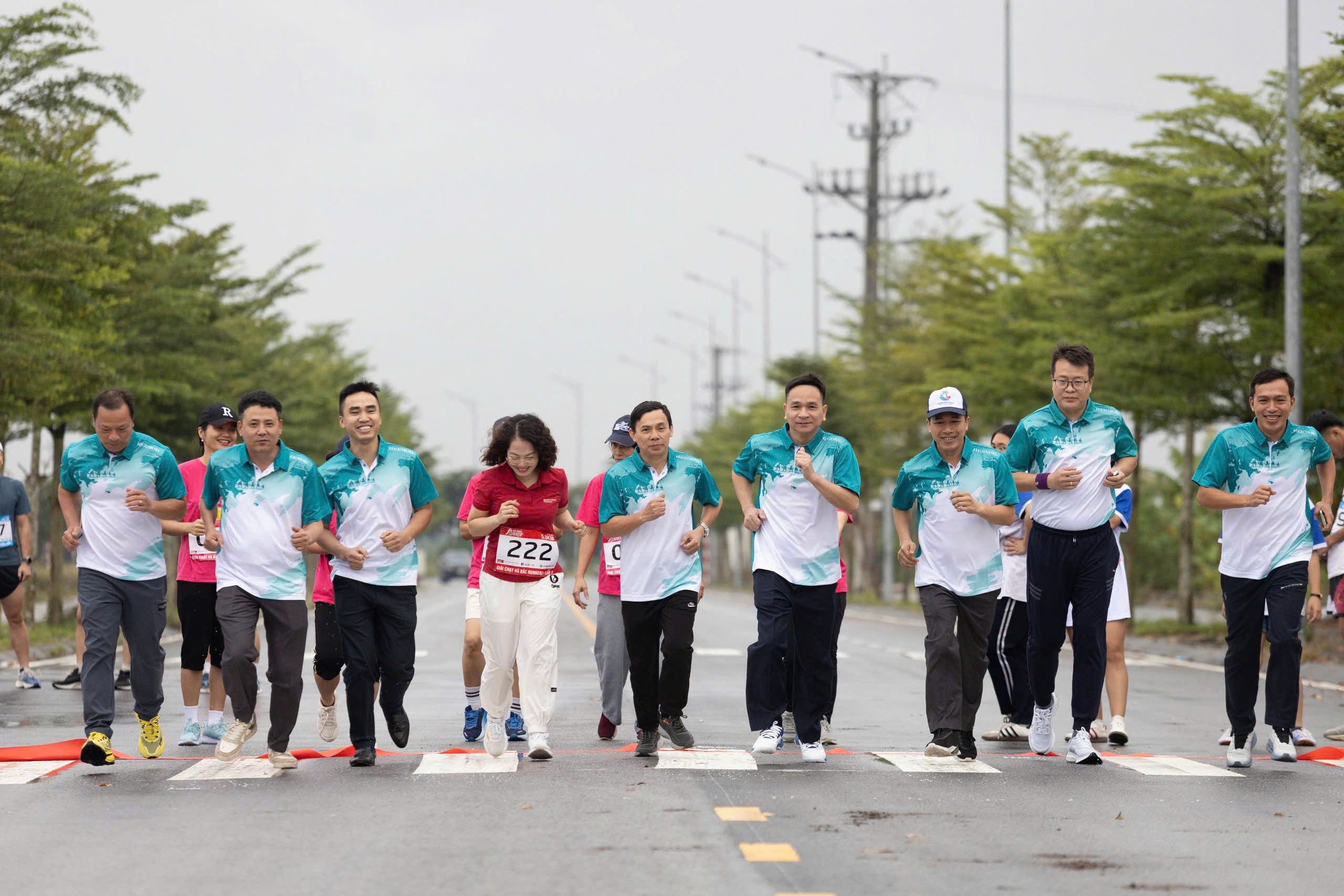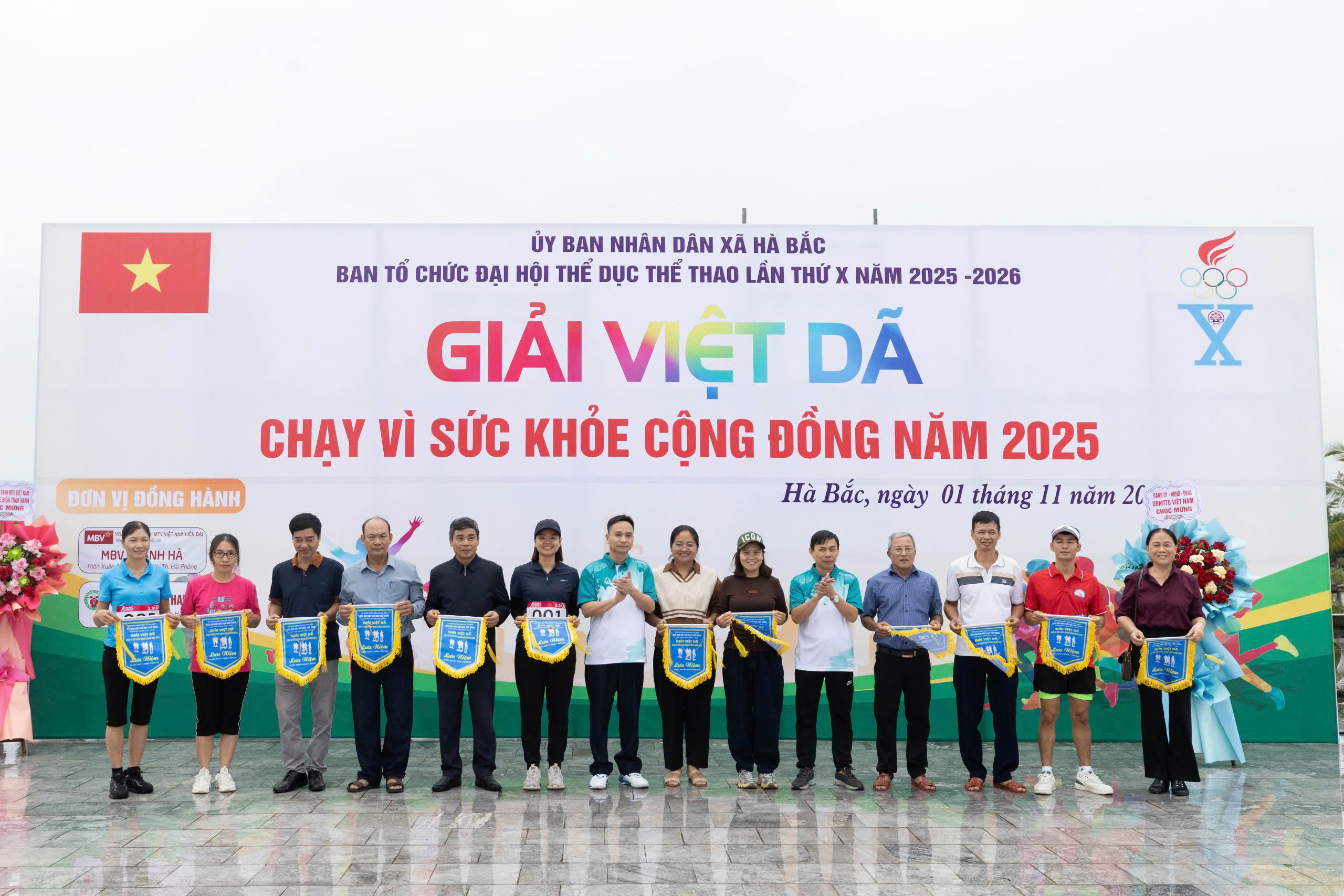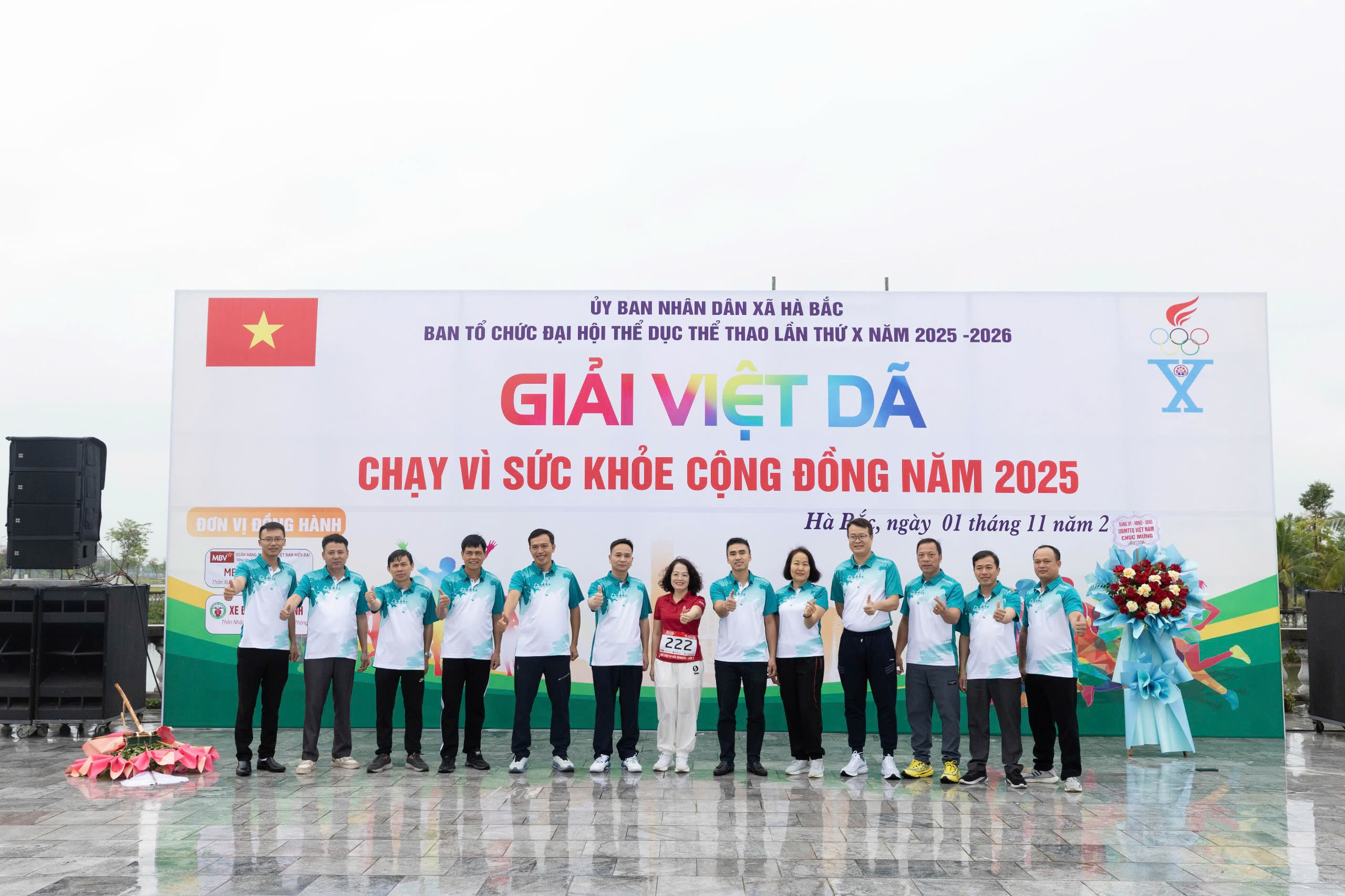 Lãnh đạo xã Hà Bắc cùng đại diện các nhà tài trợ tham gia lượt chạy mở màn, tạo không khí hào hứng cho giải đấu