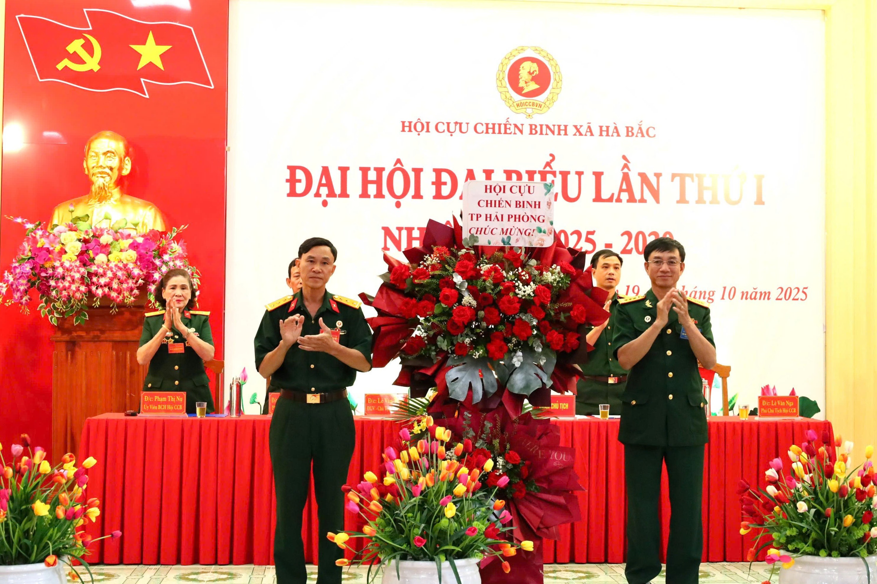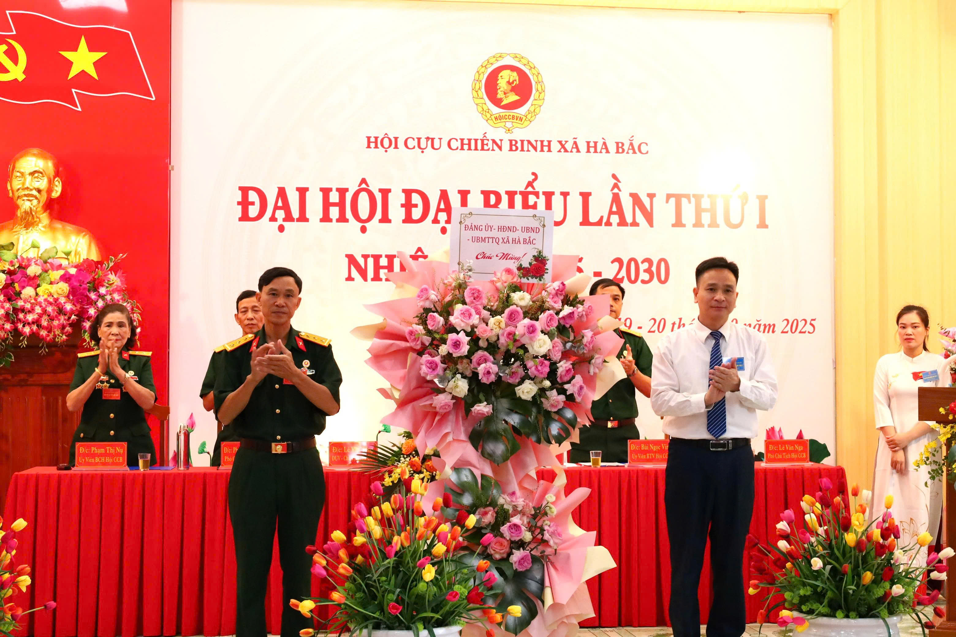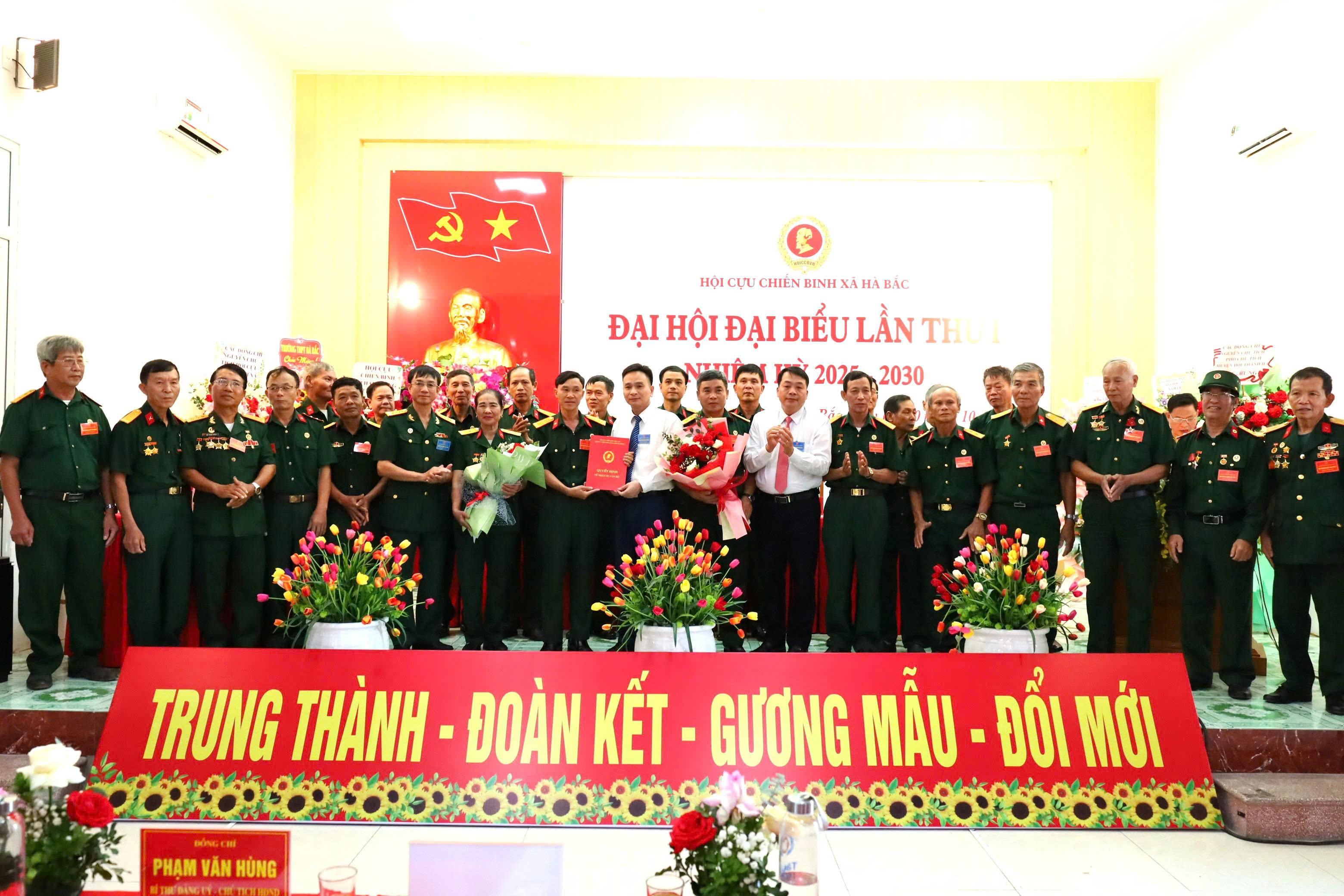 Lãnh đạo Hội CCB thành phố và lãnh đạo xã Hà Bắc tặng hoa chúc mừng Ban chấp hành Hội CCB xã Hà Bắc khóa I nhiệm kỳ 2025-2030