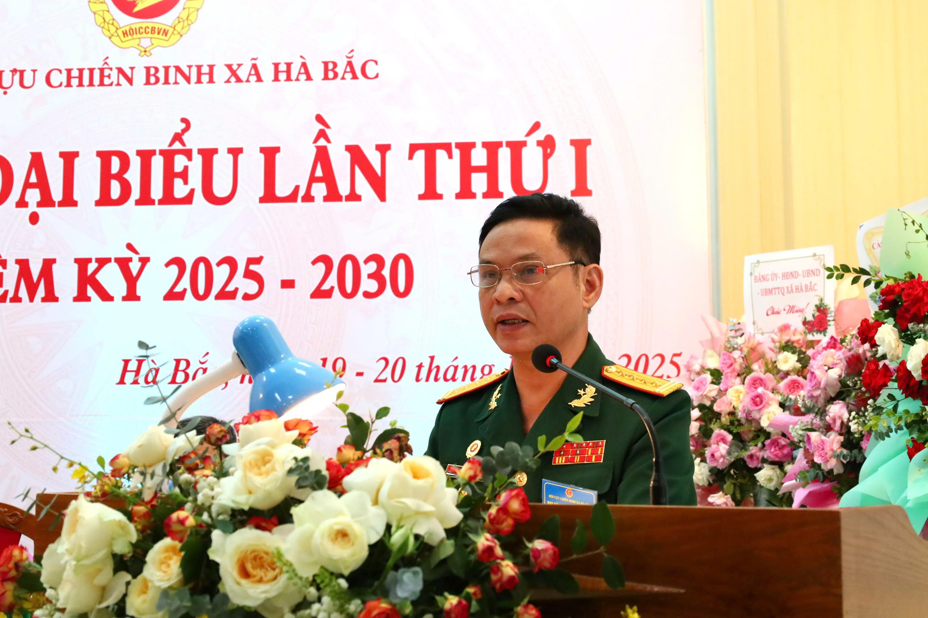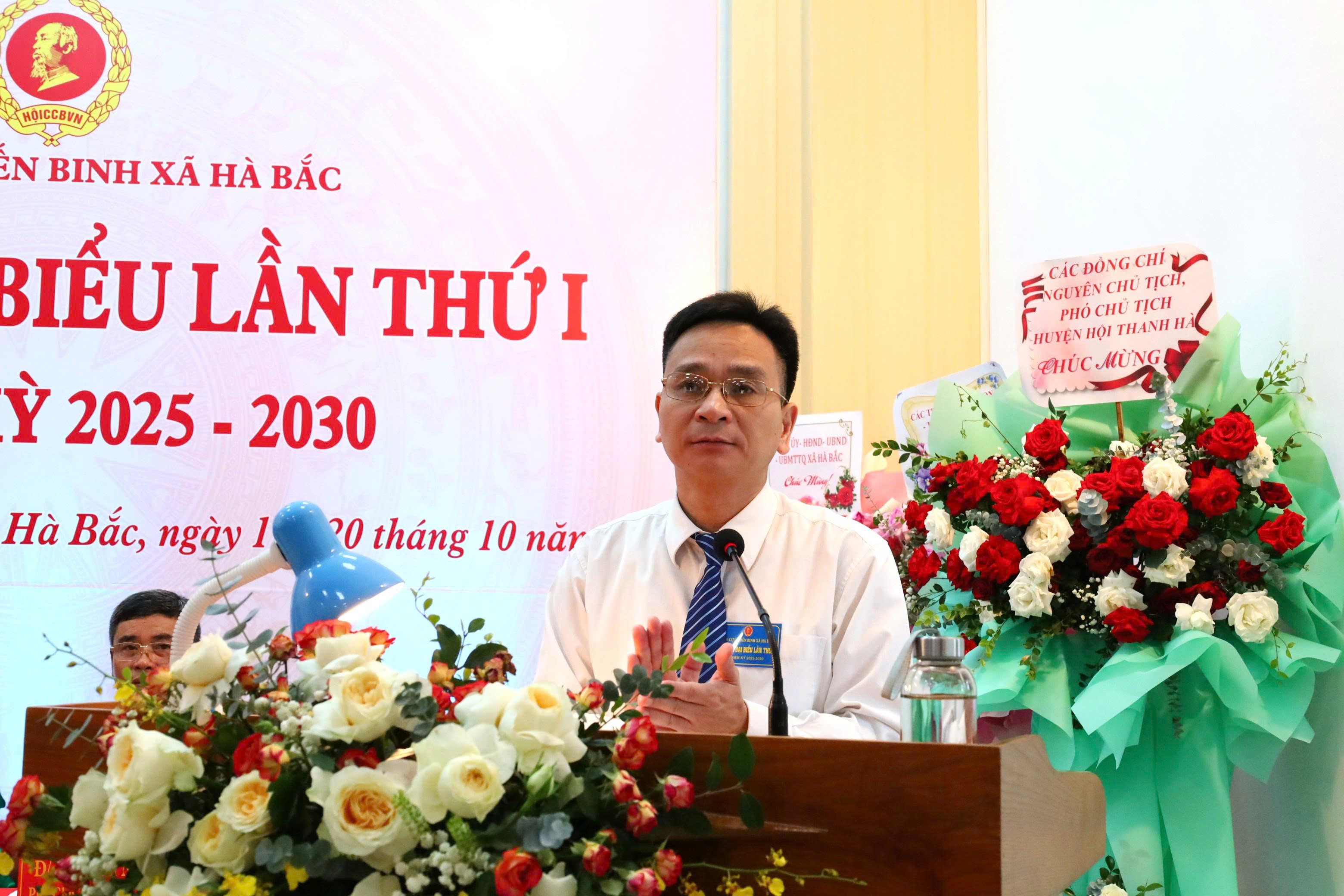Phát biểu chỉ đạo Đại hội, đồng chí Phạm Văn Hùng- Bí thư Đảng ủy- Chủ tịch HĐND xã đã ghi nhận, biểu dương những thành tích mà Hội CCB xã đã đạt được trong nhiệm kỳ qua. Đồng thời đề nghị Ban chấp hành Hội CCB xã khóa I nhiệm kỳ 2025-2030 cần tiếp tục đổi mới nội dung, phương thức hoạt động của Hội. Bám sát nhiệm vụ chính trị của Đảng bộ xã, nâng cao năng lực lãnh đạo, đoàn kết, đổi mới, xây dựng Hội vững mạnh toàn diện.Phát huy vai trò tiên phong trong phát triển kinh tế – xã hội. Đẩy mạnh phong trào “Cựu chiến binh giúp nhau giảm nghèo, làm kinh tế giỏi góp phần phấn đấu đến năm 2028, xã Hà Bắc không còn hộ nghèo. Phát huy vai trò nòng cốt trong quốc phòng – an ninh. Hội cần tích cực tham gia giữ vững ổn định chính trị, trật tự an toàn xã hội; xây dựng phong trào “Toàn dân bảo vệ an ninh Tổ quốc”; vận động con em thực hiện tốt Luật Nghĩa vụ quân sự; không vi phạm pháp luật, các tệ nạn xã hội, phấn đấu cùng với Đảng bộ, chính quyền, MTTQ và các đoàn thể xây dựng xã Hà Bắc đến hết năm 2028 không có ma túy. Phát huy vai trò của Hội trong xây dựng Đảng, chính quyền, MTTQ và hệ thống chính trị vững mạnh. Quan tâm bồi dưỡng, trẻ hóa đội ngũ cán bộ Hội; ứng dụng công nghệ thông tin, nâng cao năng lực điều hành, quản lý, xây dựng Hội thực sự vững mạnh toàn diện, bảo vệ quyền và lợi ích hợp pháp của hội viên, xứng đáng là lực lượng chính trị tin cậy của Đảng, chính quyền và Nhân dân.