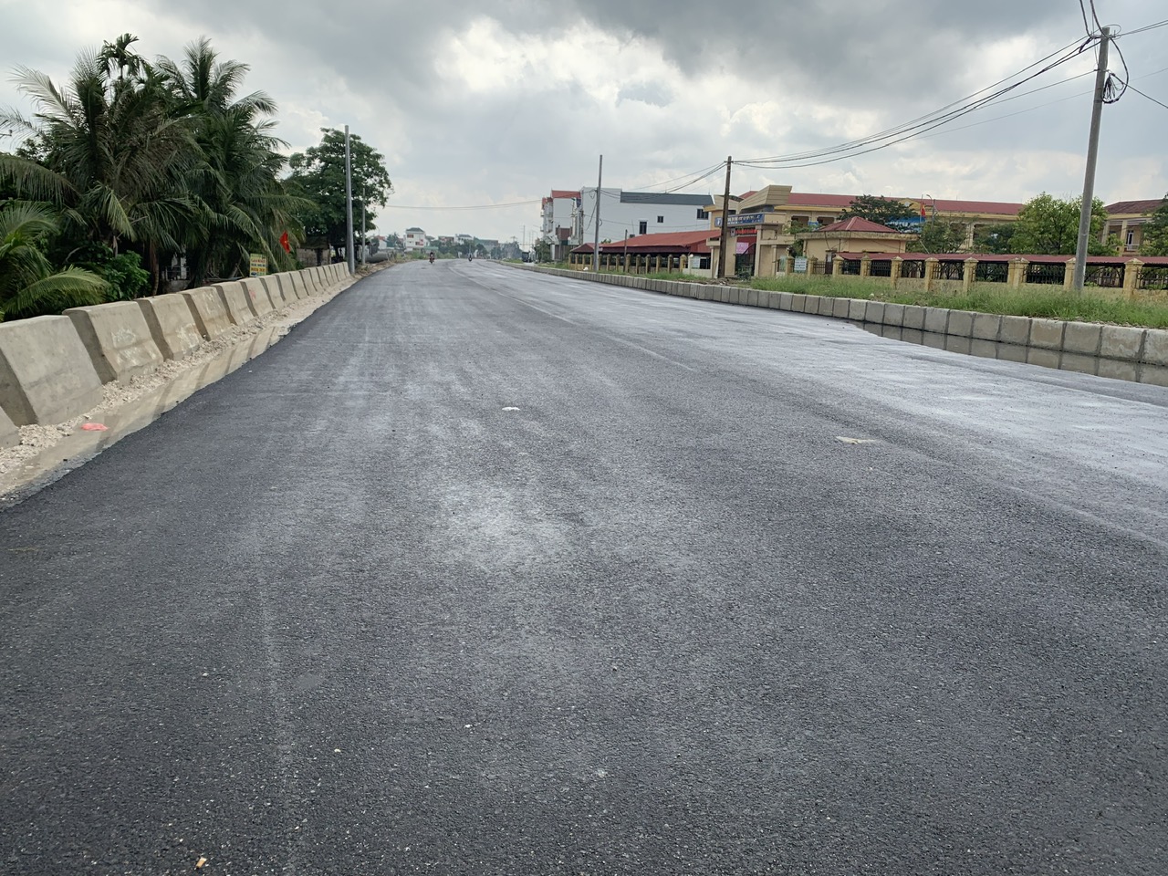 Đường tỉnh 390B đoạn qua Cổng trường THCS Hồng Lạc đã được nhà thầu thi công trải nhựa với chiều rộng 12 m